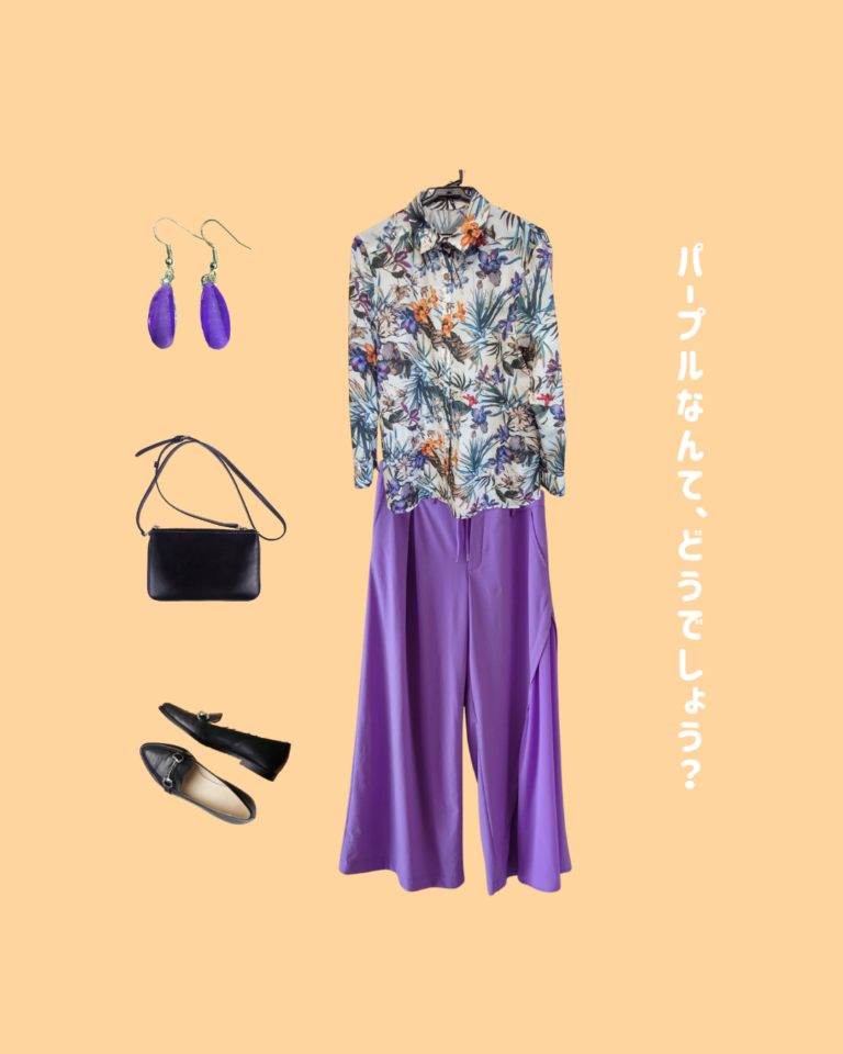 お手持ちの中に、パープルのパンツがあったので、柄から一色拾うことにしました。