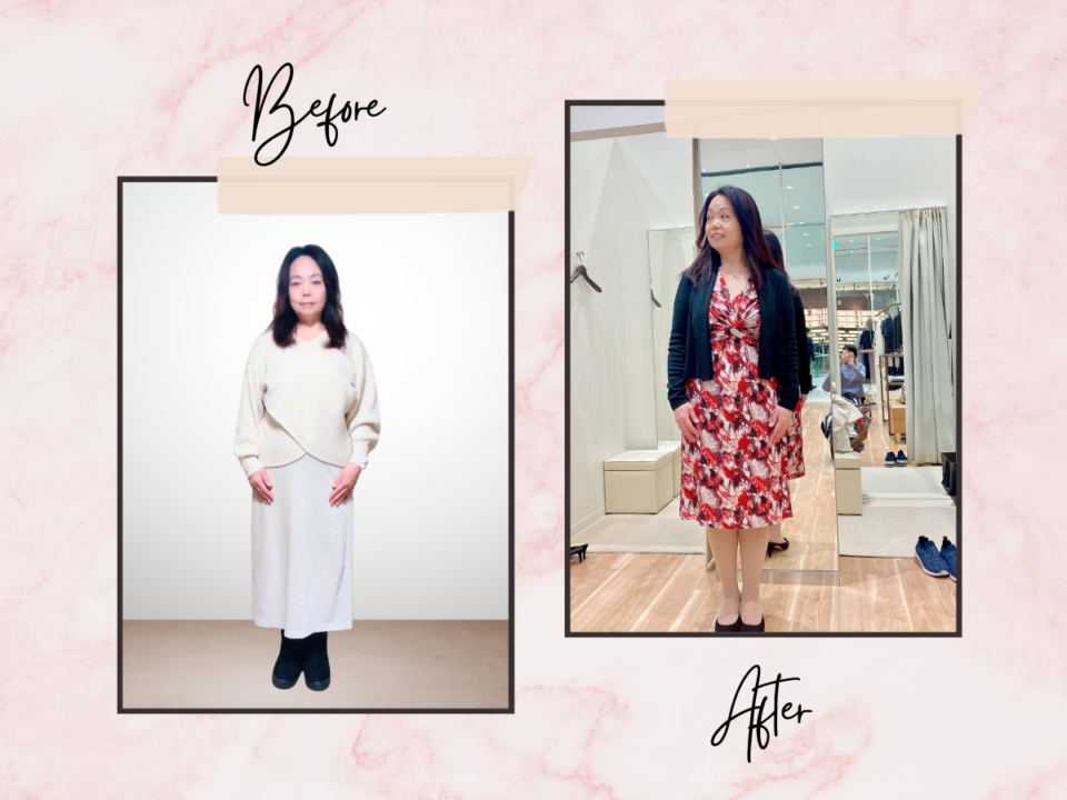 ショッピングのご依頼内容は、パーソナルカラー や骨格診断に合わせたフェミニンなファッションをしてみたいということでした。